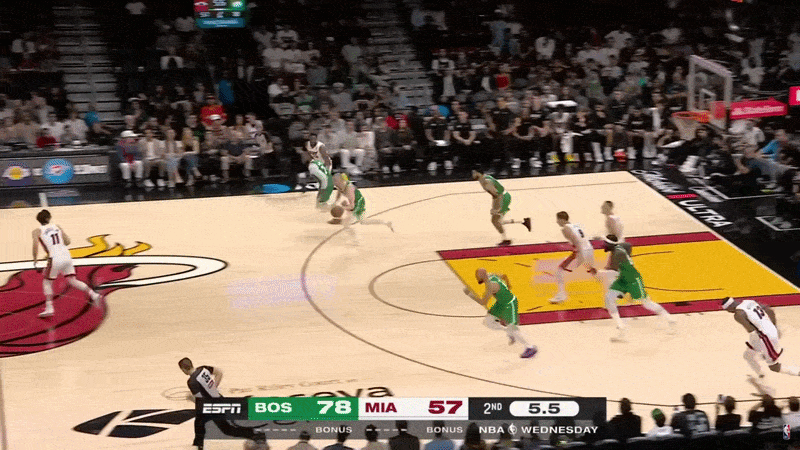 But still, look at this effort from White. He throws the alley-oop, touches the opposing baseline, then flies back with supersonic speed to contest a Pelle Larsson finger-roll. Nobody else on Boston bothered to try; it was a 20-point game with 1.5 seconds left in the half. But White never lets up: