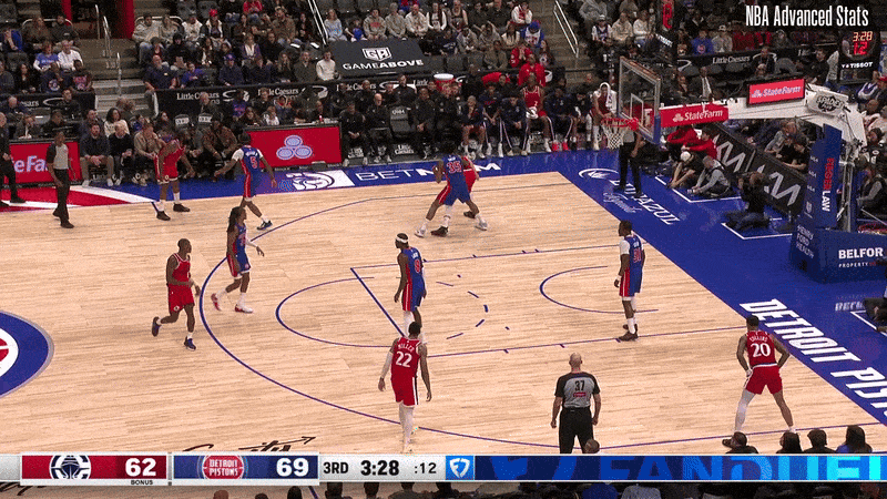 Using season-long lineup data, with Beef Stew on the court, the Pistons only allow opponents to shoot a quarter of their shots at the rim in the first place, a 95th-percentile figure, and make just 55.9%, a 99th-percentile figure. All of these strengths turn into glaring weaknesses when Stewart rests; he’s a one-man brick wall. Or maybe a singular giant brick. A Whomp, if you will.