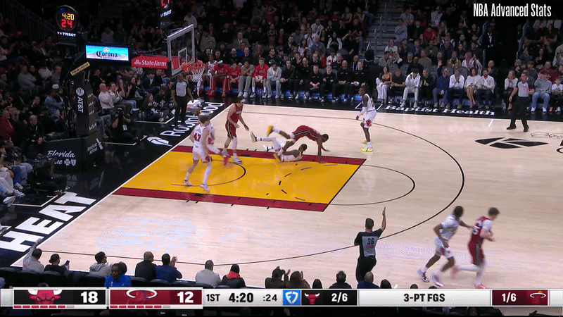 Dosunmu has always been a 5.5th man; good enough to start, not quite good enough to stay a starter. Perhaps relatedly, he’s having his finest campaign ever while starting less than he ever has. Dosunmu is setting career-highs in three-point accuracy (45%), three-point volume (5.8 3PA per 75 possessions, roughly average positional volume), points (15.0), true shooting (64%), and assist rate (21.3%, which is nice for a non-point-guard). He’s a stalwart defender with the size and agility to guard one to three, and he’s so quick in transition that it catches even the camera people off guard: