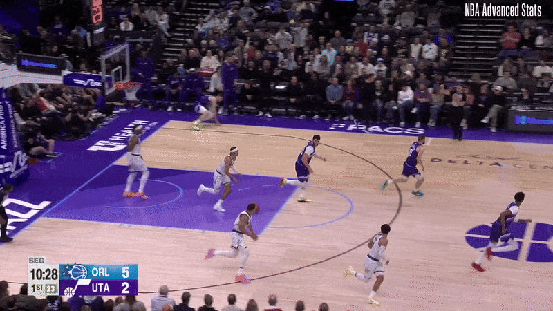 Watch Paolo Banchero on the right side of the screen lazily swat George away like a not-particularly-pesky mosquito on this transition “defense” play: