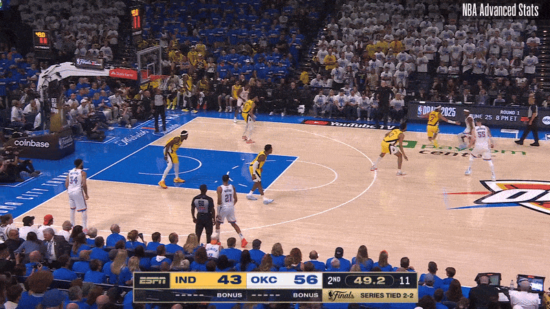 Seemingly every time Indy had anything resembling momentum, they’d give up an untimely offensive rebound to Isaiah Hartenstein, Chet Holmgren, or Lu Dort (who combined for a whopping 16 second-chance grabs). They also allowed an egregious and-one to Jalen Williams off a nifty inbounds pass: