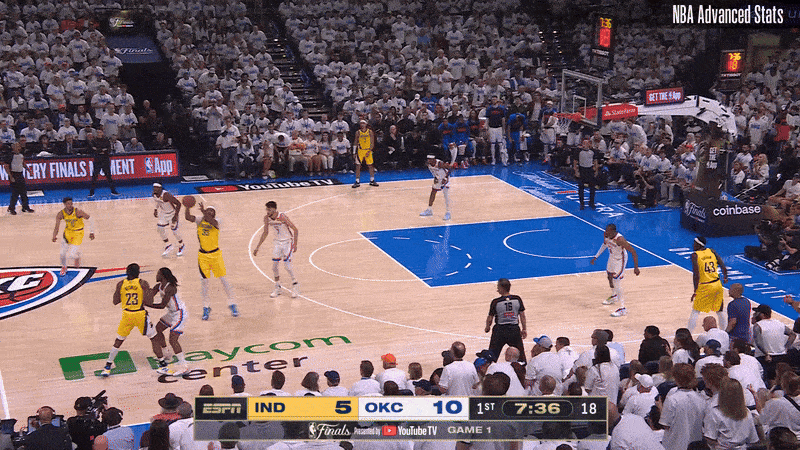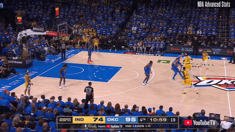 And while Turner isn’t Bam Adebayo on the perimeter, he can survive for precious seconds when on an island against damn near anyone. (Interestingly, the Thunder haven’t gone out of their way to target him; although he’s a far stouter defender than Tyrese Haliburton or Obi Toppin, I wonder if there wouldn’t be some value in removing his presence at the rim by attacking him more in pick-and-roll, too.)