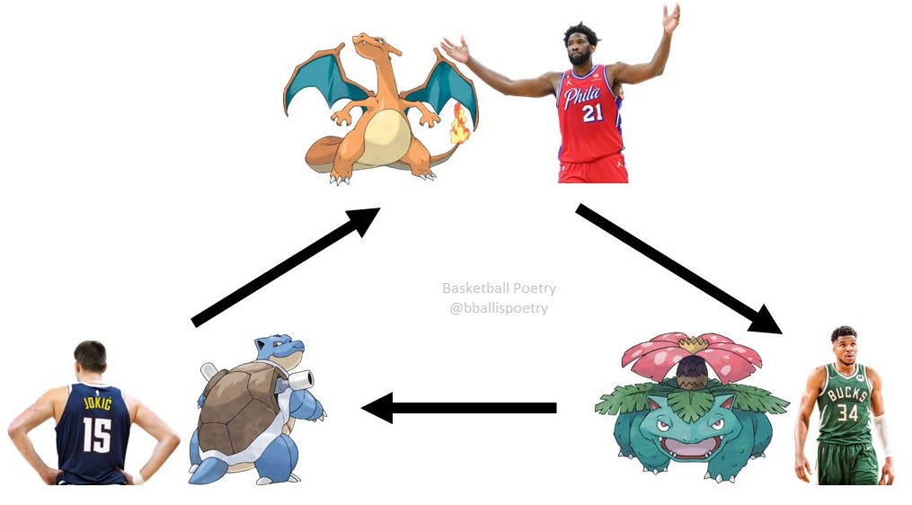 And, perhaps most importantly: Embiid gets to the line nearly as often as Giannis… but makes 86% of his free throws (compared to Antetokounmpo’s 65%). That’s outrageous accuracy, and it’s adding 10 points per game to Embiid’s totals. He’s averaging the sixth-most made free throws per game ever.